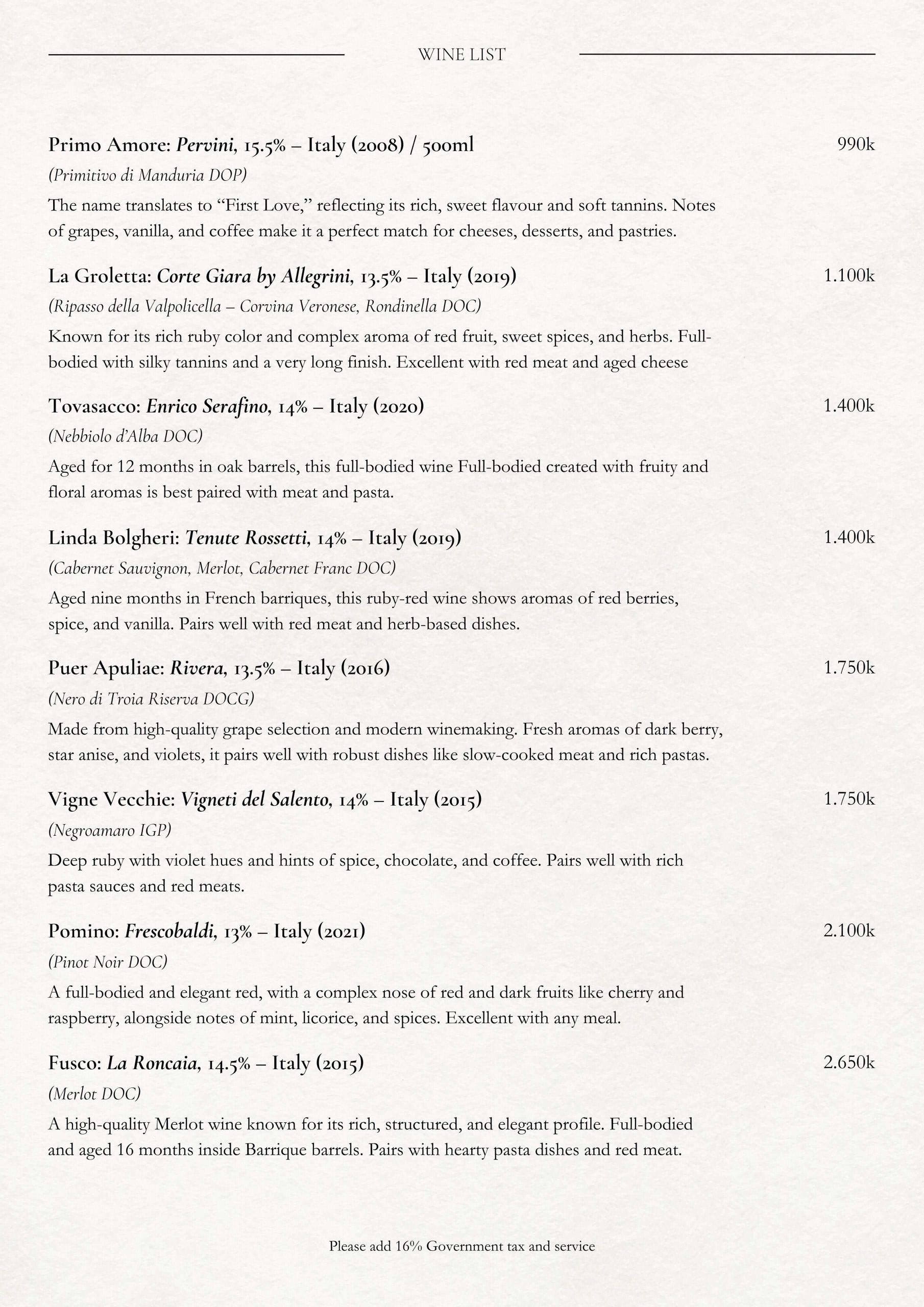 Our Menu
